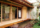広間南側を見る。靴脱ぎ石 飛石 犬走により庭園の柔らかさを感じ取る事が出来る。