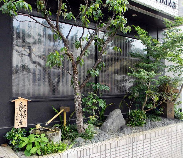 正面は、飲食店になっているが、軒先が細長い場所である。毎年 春先に紅梅の花が楽しみです。