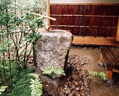 | 左側より | 茶室・広間前に置かれた自然石の手水鉢。 |