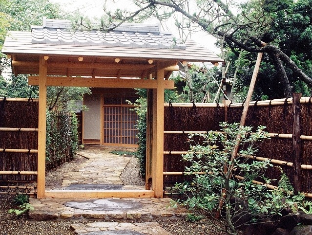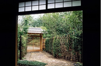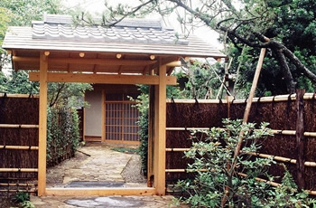 | 茶庭・日本庭園の入口と成る。園路は、石張りで作られる。 | |
