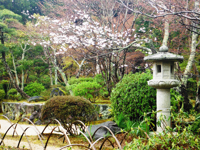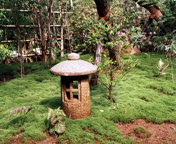 | 枯山水の石組・石積などを行ってはいるが、その堅さをなじめるように苔・樹木によって景観を見出している。 | |