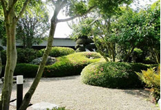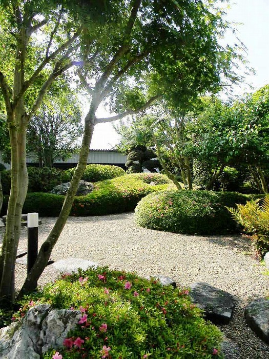 | 枯山水を中心に景石、サツキの刈込を使用し、庭に起伏を図る。 | |