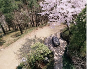 | 庭全体が自然の風景になっている。その景観を利用する事により、主庭としては大胆で スッキリとした園路の模様。春先には「桜」を見る事により庭の美しさを自宅に取込んだ美の庭です。 園路、飛石、景石は、木曽石を使用しています。 低木の「サツキ」を中心とし、地被は、玉龍を使用。 |