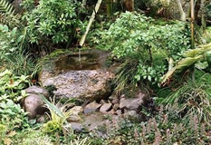 | 手水鉢の周囲は石積で土止めを使用し安らぎの世界を見い出している。 |