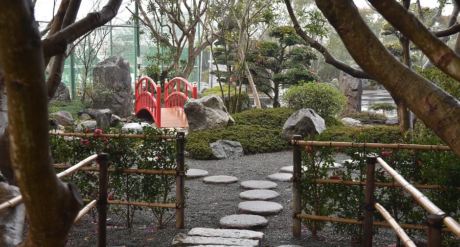 南側は、太平洋からの潮風によって防風林を利用し、本格的な日本庭園を目的に赤橋(あかはし)を用ました。池、鯉、川流れをより美しき庭園を発表したいと思います。