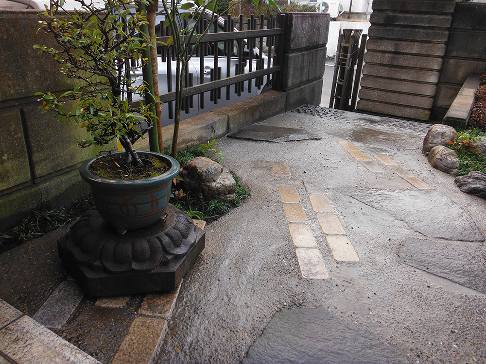 円美の名前に対しては、車庫部の角度(かど)部分を柔らかく見え変化をあたえる為の小砂利による円美の姿。
