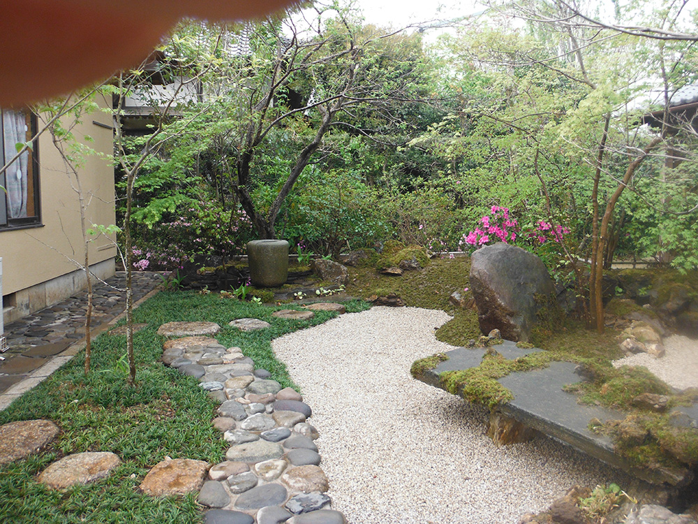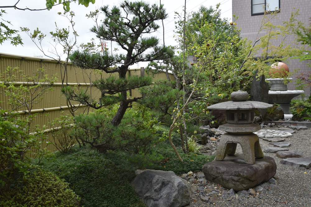 小庭園にあっても花木類を植栽することにより庭に対し四季の明るさを取り入れています。