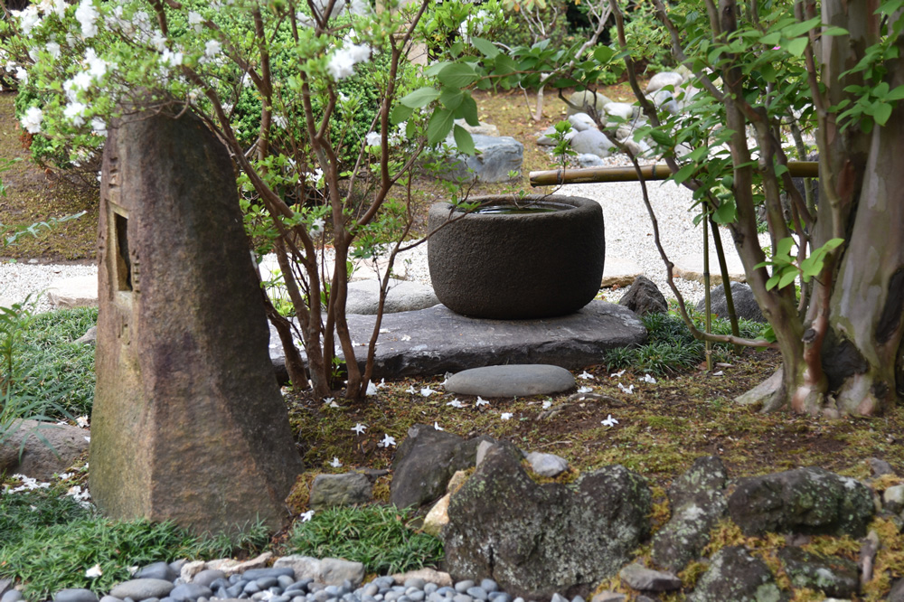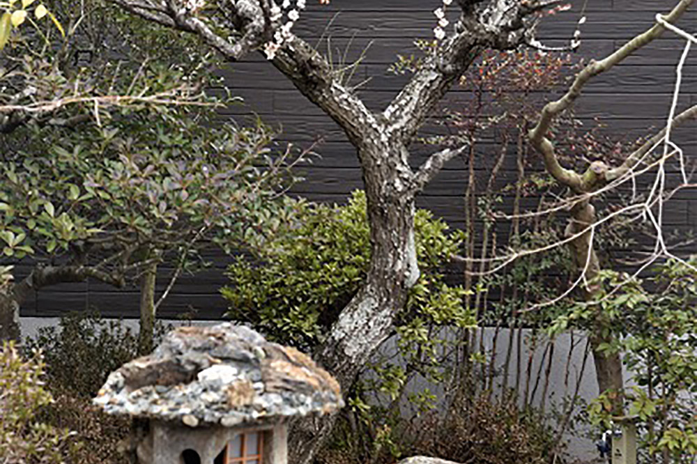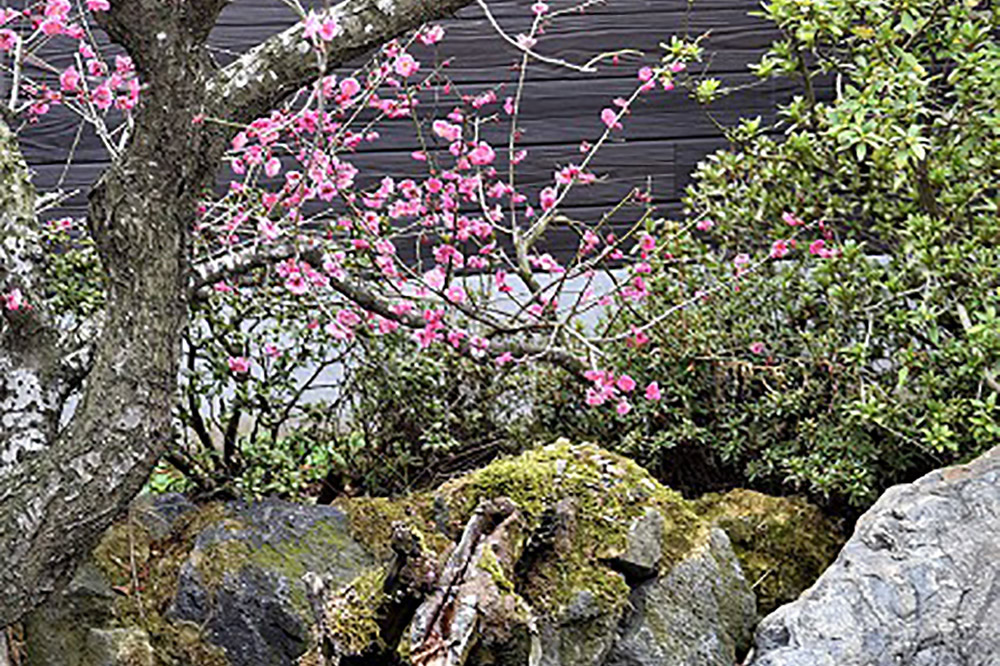庭の中に対しては、枝垂れ梅を等して池、枝垂れ桜・龍直方と見いられる庭口です。