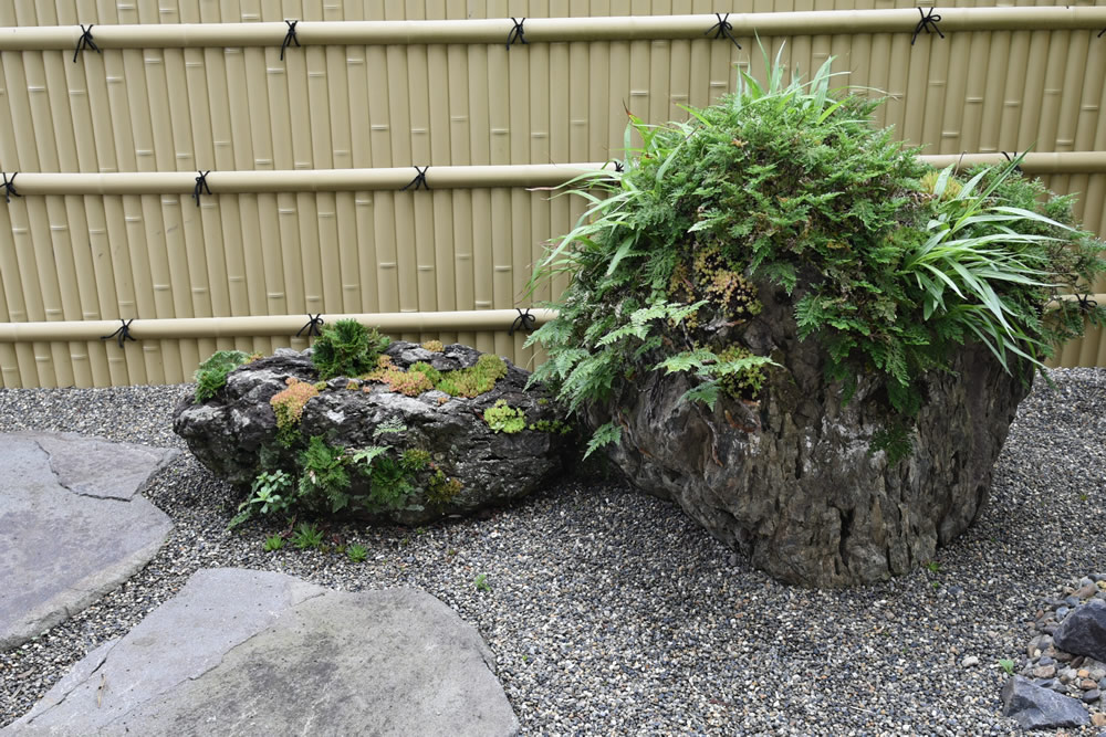 ① 数寄屋造りの建築建屋や下地窓を想定しての庭造りです。