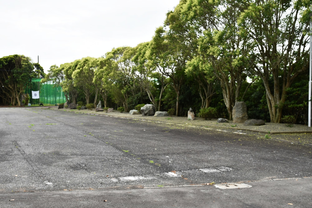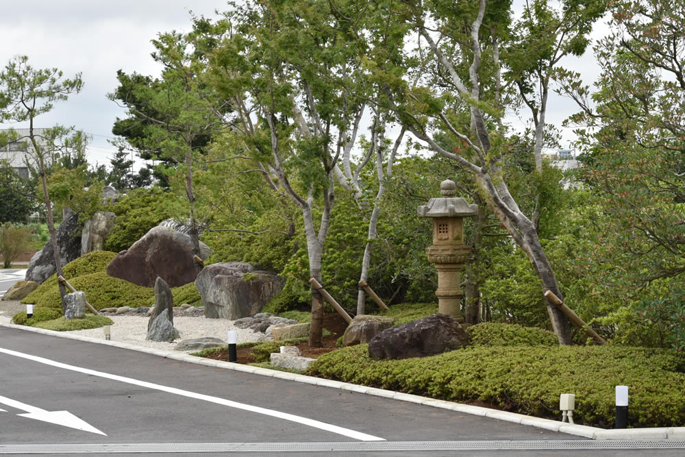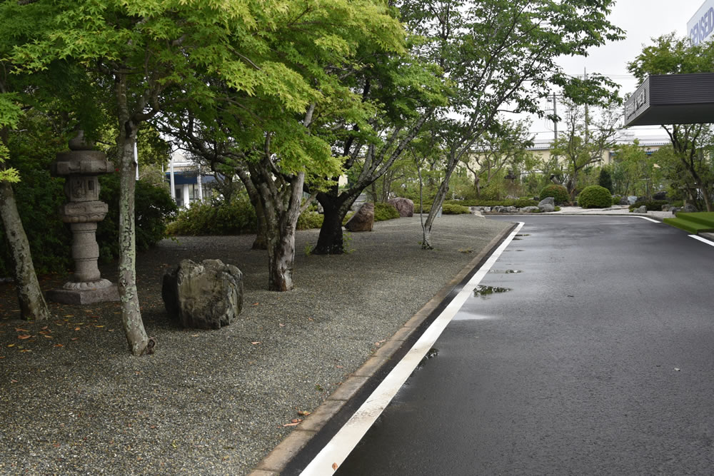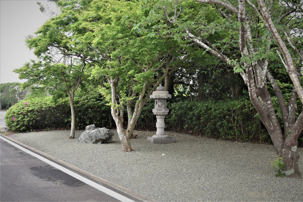③ 駐車場は、約3~4坪でですが、後方の景観を利用し琴柱灯篭を置く事より美観を取り込みました。