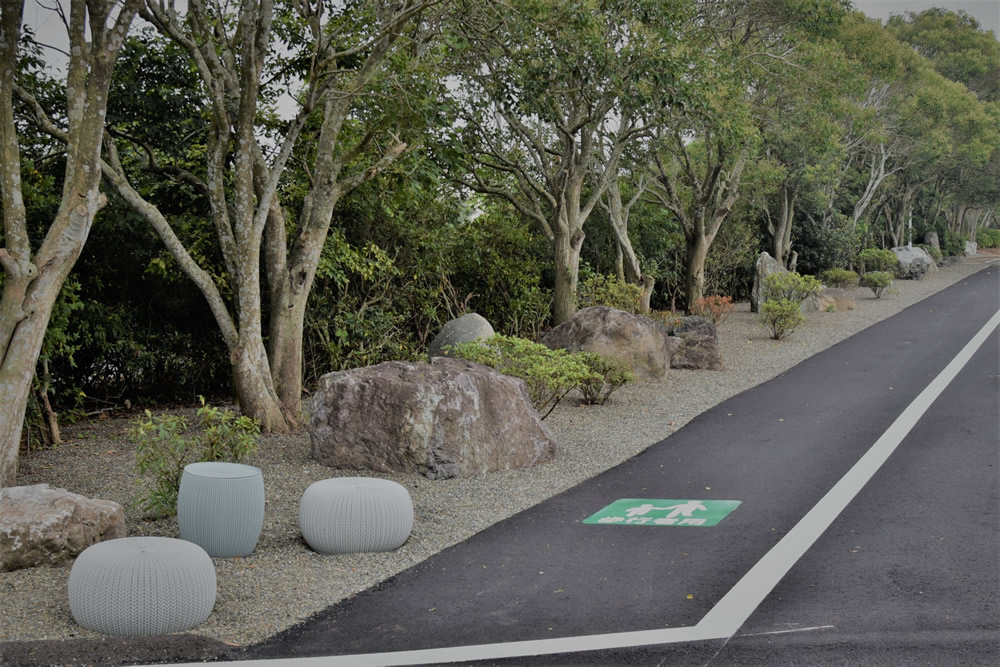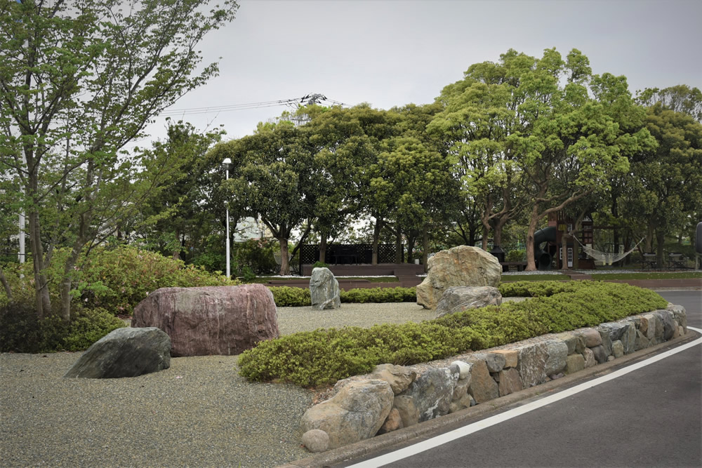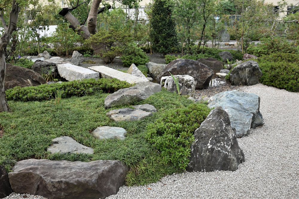 ⑥ 中心部には影石、地被、低木によって一つの島々を表している。